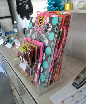 Revistero, organizador de bolsas de regalo, hojas de colores etc. En acrílico transparente de 3mm, tamaño carta vertical